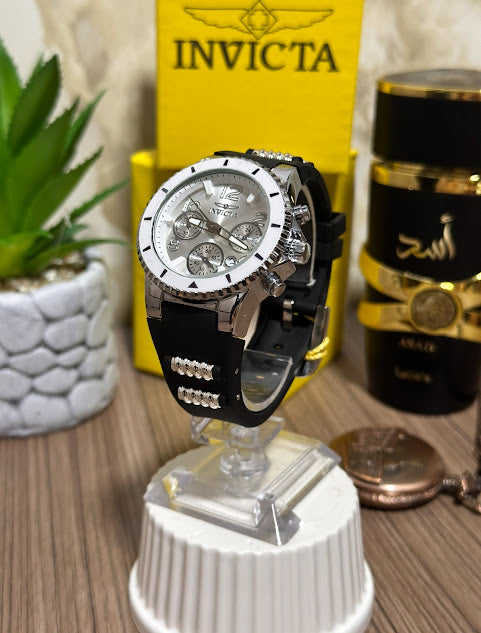 Invicta Dama Plateado Esfera Plateada Manilla Silicona Negra