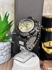 INVICTA NEGRO ESFERA DORADA MANILLA DE SILICONA NEGRA