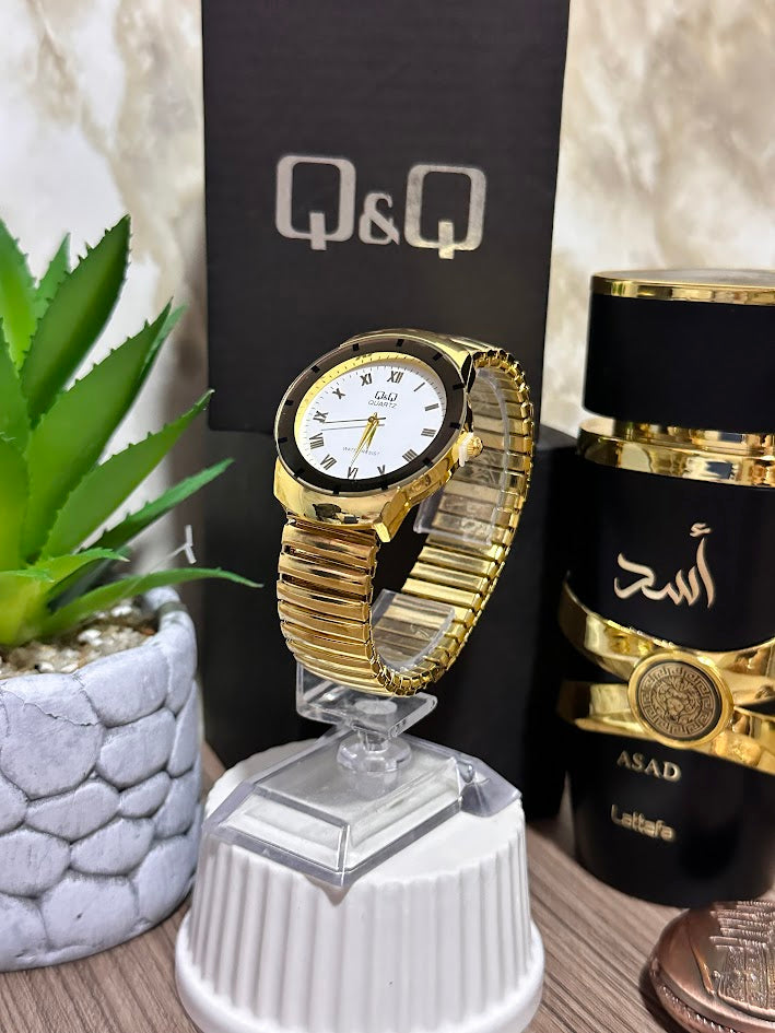 Q&Q DORADO ESFERA BLANCA MANILLA TIPO PULSO