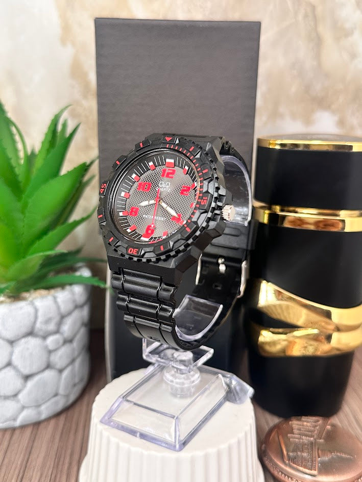 Q&Q NEGRO ESFERA NEGRA MANILLA DE SILICONA NEGRA