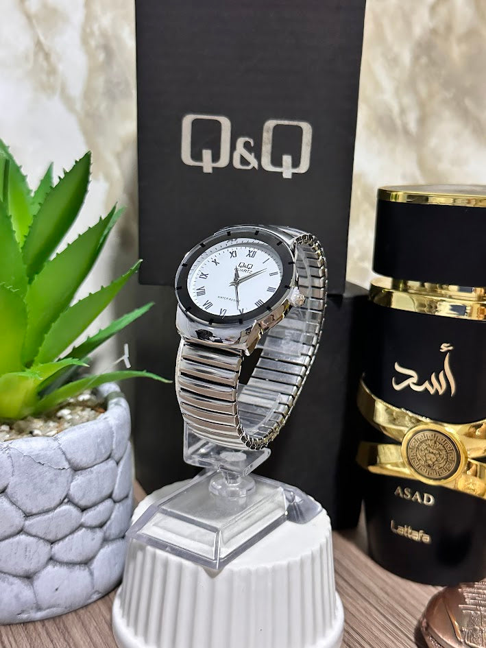 Q&Q PLATEADO ESFERA BLANCA MANILLA TIPO PULSO