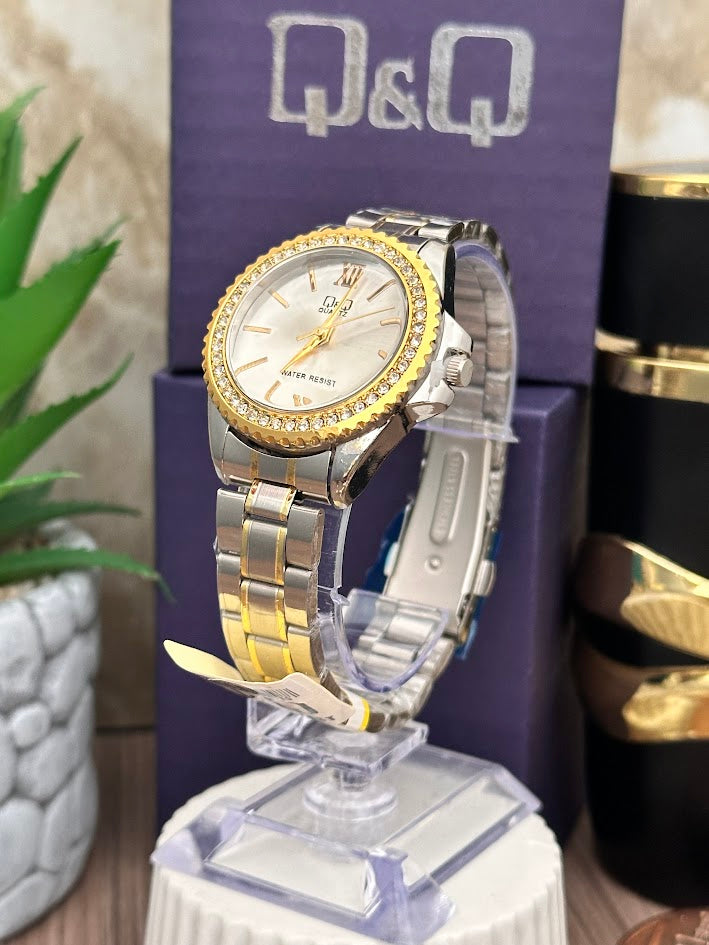QYQ Dama Bicolor Diamantado Esfera Plateada