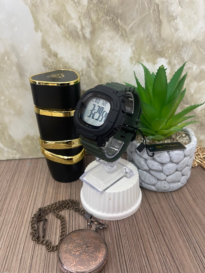 RELOJ DIGITAL CAJA NEGRA MANILLA VERDE SUMERGIBLE