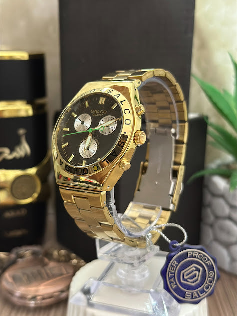 SALCO CABALLERO TODO DORADO ESFERA NEGRA LETRAS EN EL ARO