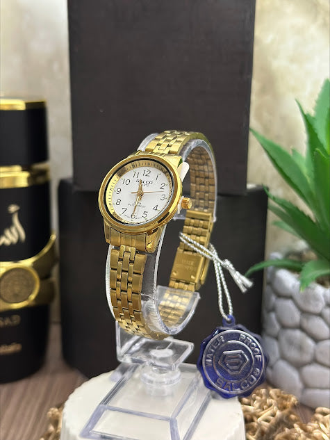 SALCO DAMA DORADO ESFERA BLANCA BORDE NEGRO